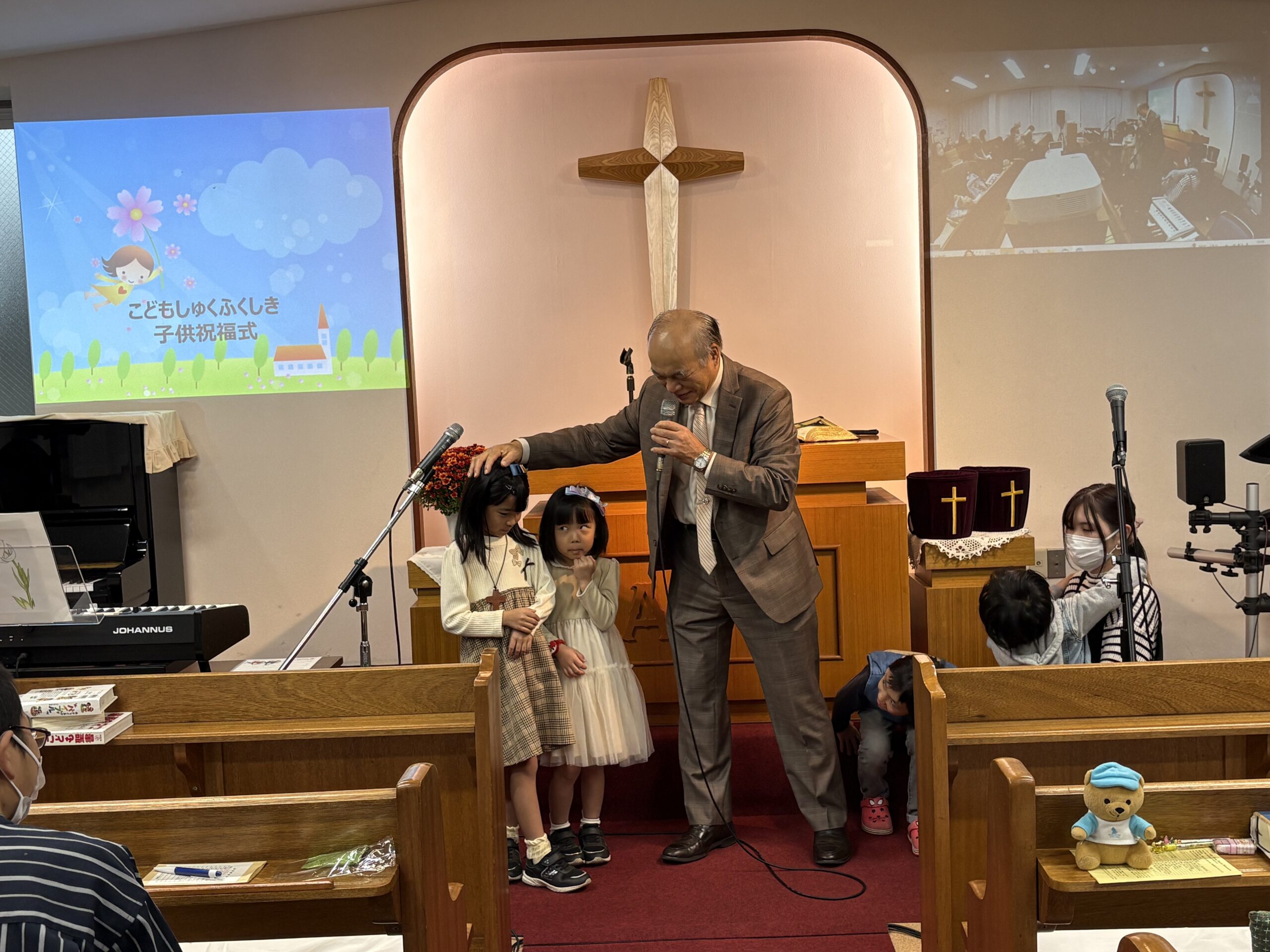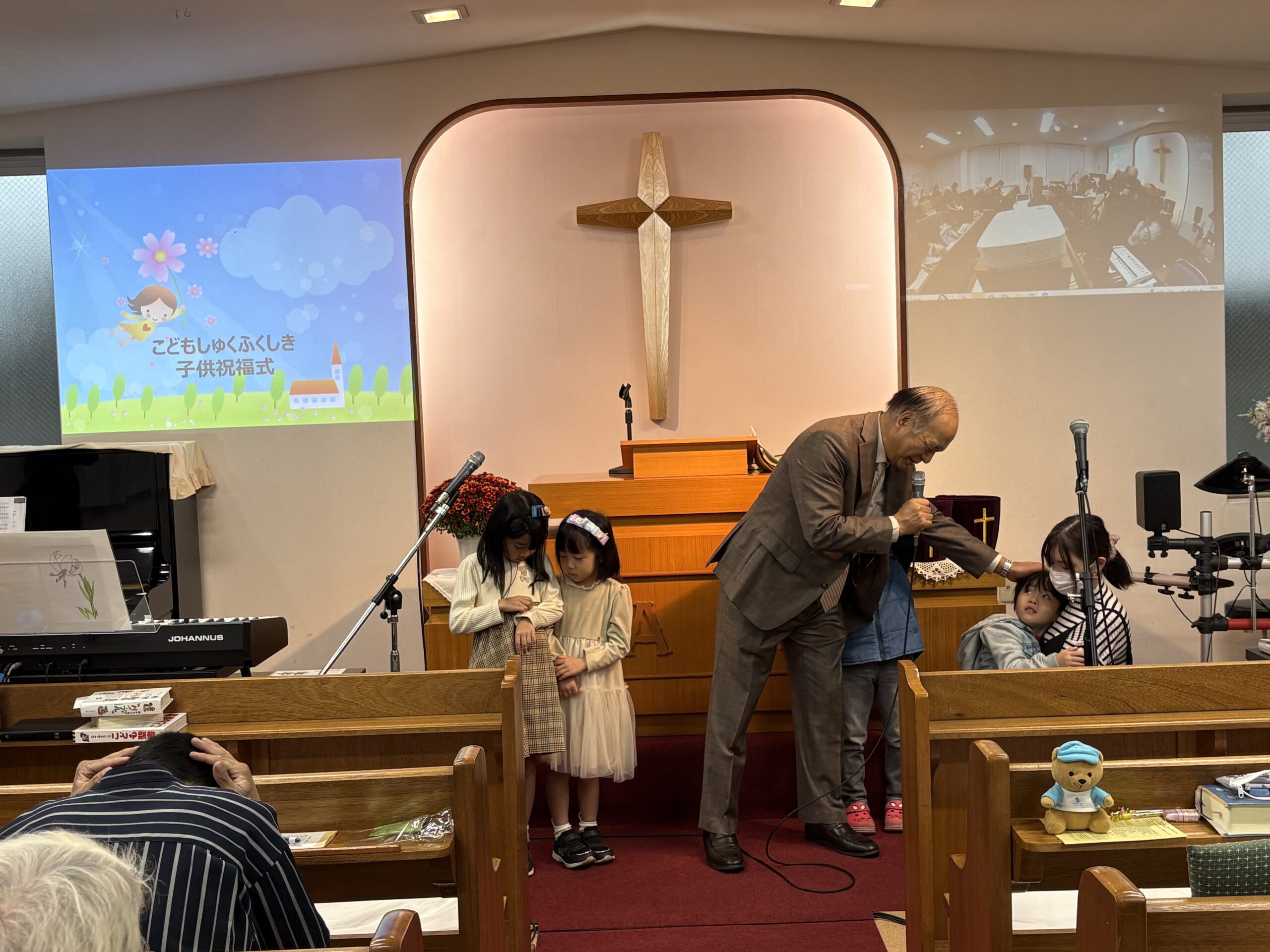 今日は神様の愛される子供たちの成長を祈る子供祝福式を行い、普喜牧師が子供たちへ聖書のお話のあと、4人のためにお祈りを捧げました。主イエス様の祝福が子供たち一人ひとりに豊かにありますように👐