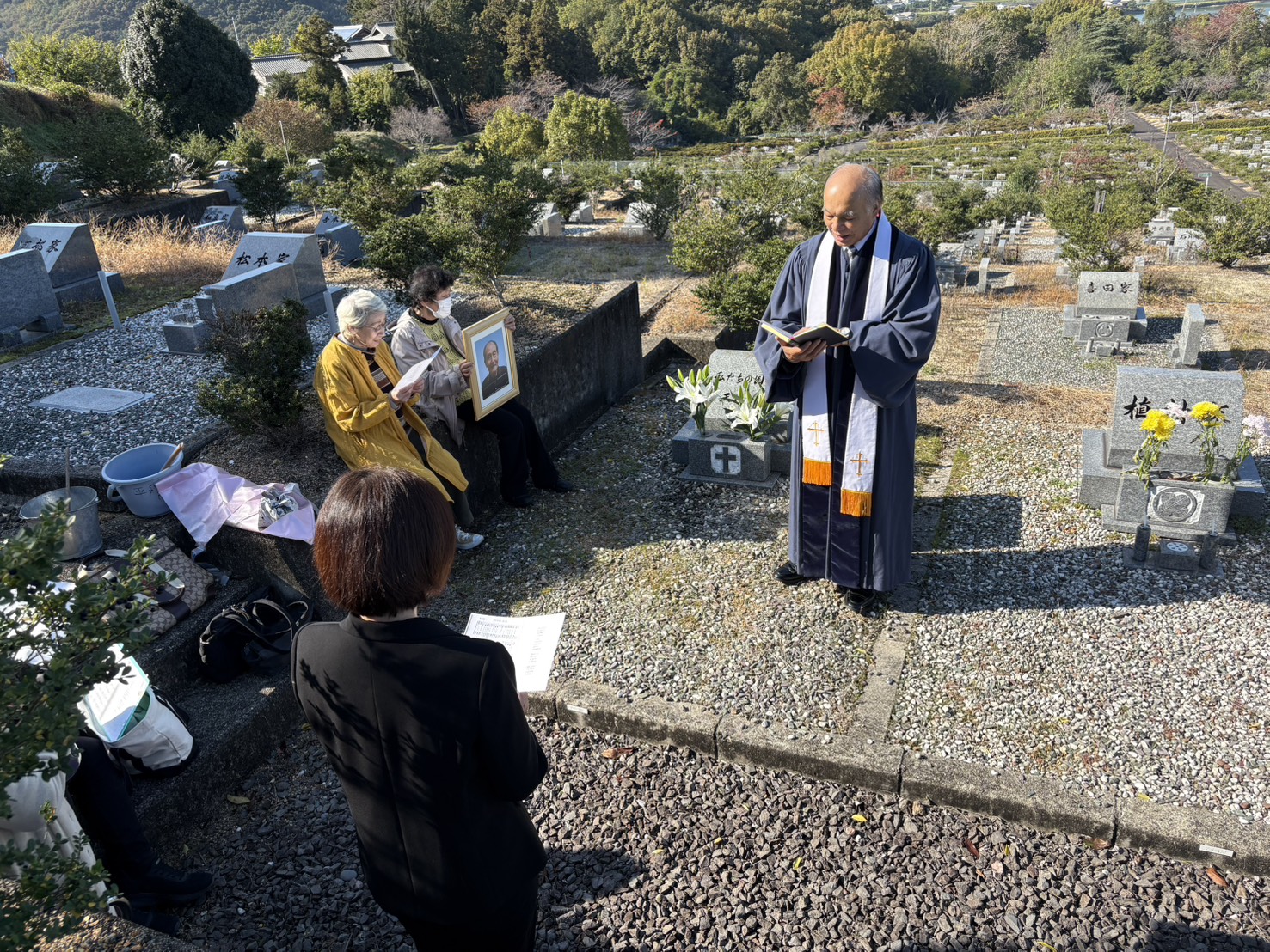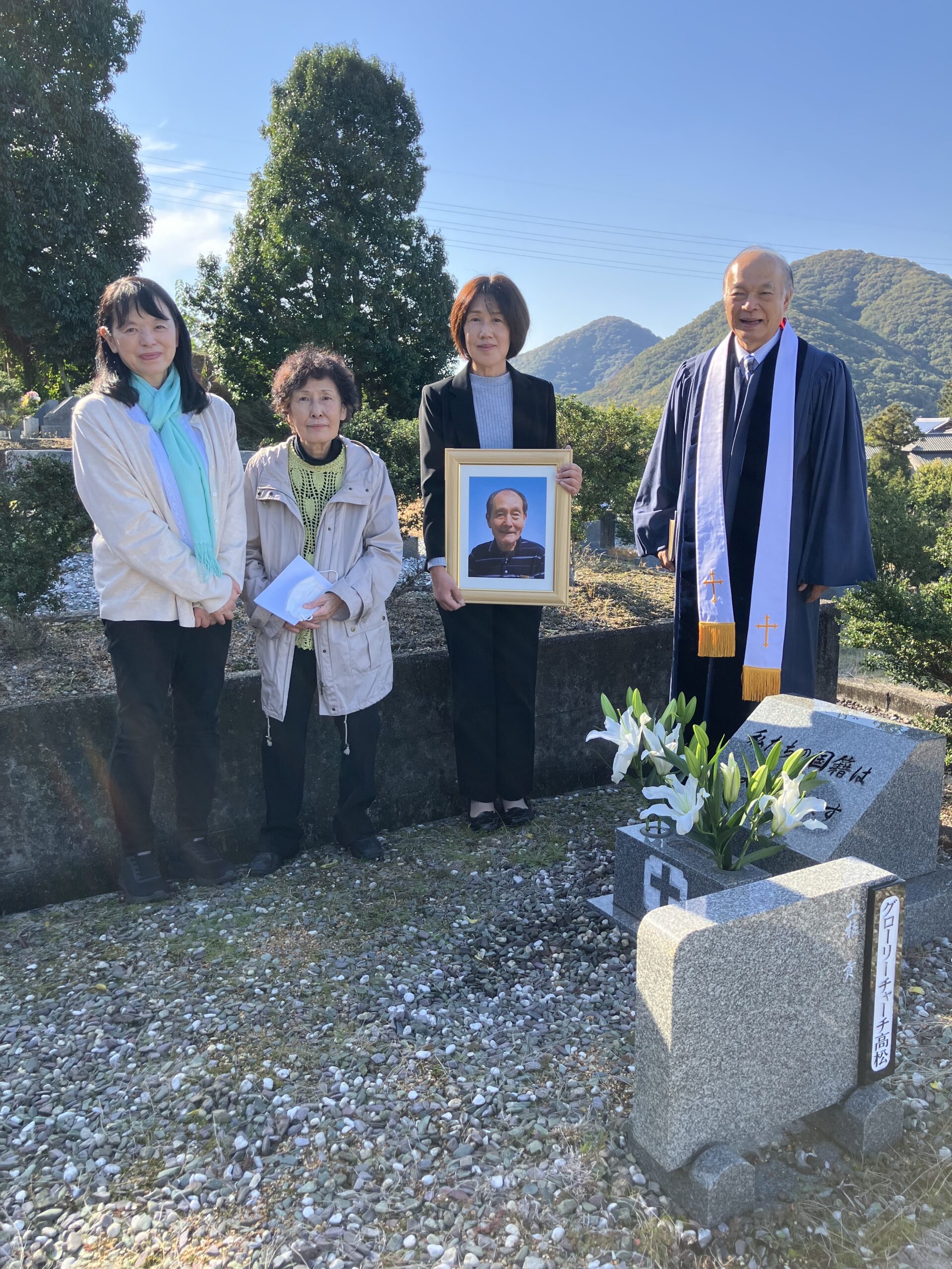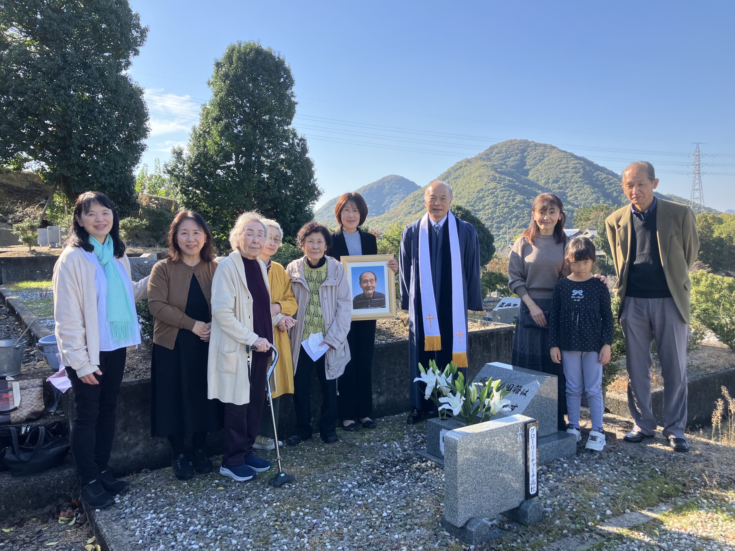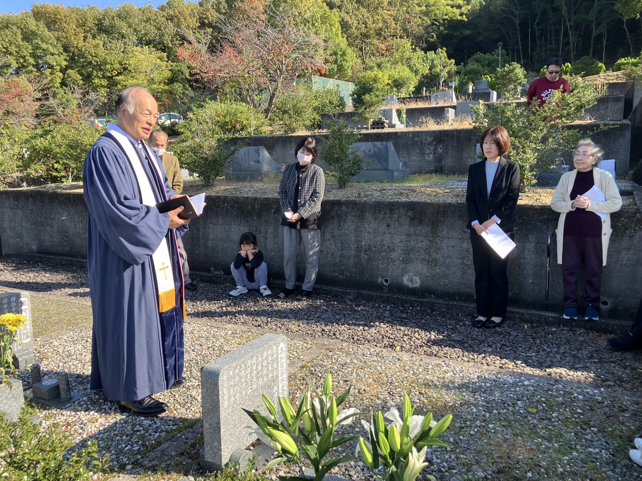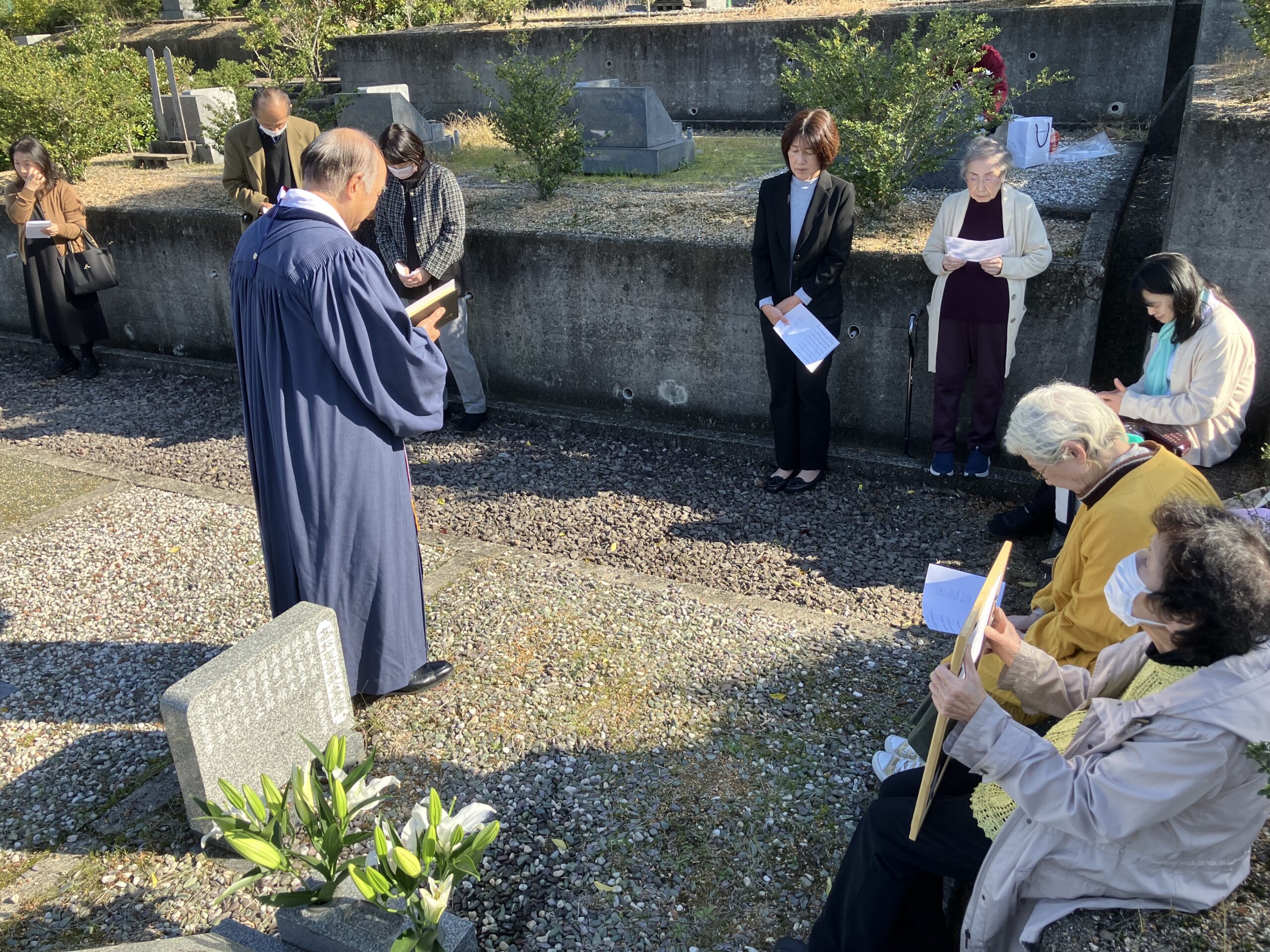 本日は御国に帰られた方々を偲ぶ召天者記念礼拝を持ちました。3名のご家族より愛のあふれるお証しを頂き、皆感謝に満たされる時が与えられました。昼食後は二つの教会墓地に向かい、三谷町の平和墓地公園では上枝貢兄の納骨式も執り行われ、お天気にも恵まれた素晴らしい一日を過ごす事が出来ました。